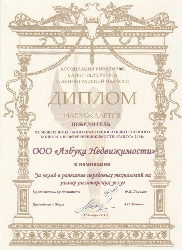 Если Вы хотите продать квартиру в Петербурге, но при этом не потратить массу сил и времени на поиски реальных Клиентов, достаточно просто обратиться в агентство «Азбука Недвижимости». Мы, являясь победителем межрегионального ежегодного общественного конкурса в сфере недвижимости «Каисса-2014», «Каисса -2015», «Каисса-2016», «Каисса-2017», уже заслужили внимание и уважение многих горожан, именно поэтому:
